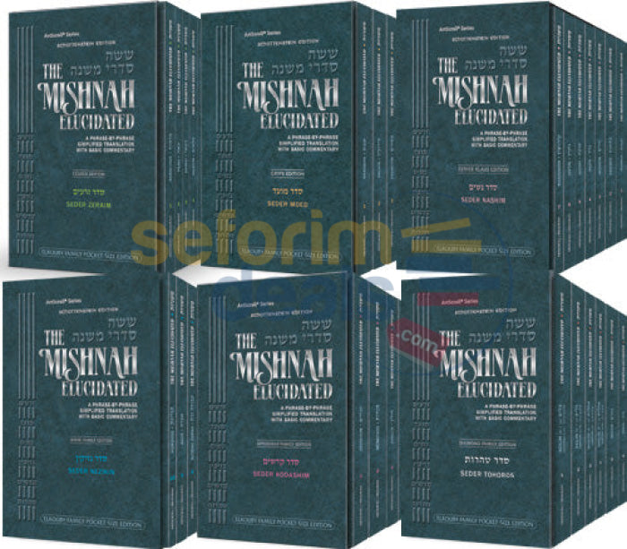 The Elkouby Family Pocket-Size Edition of the Schottenstein Edition Mishnah Elucidated, is a 65-volume set of the the most popular Mishnah series in English.