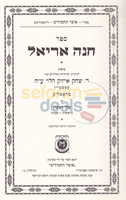 Product Informationספר חנה אריאלSefer Chana ArielHardcover | 6" x 9" | 3 Vol. SetPublished by: Kehos / קה"תAbout this Bookדרושים עמוקים על דרך חב"ד על סדר פרשיות התורה ועודג כרכיםמאת: הרב יצחק אייזיק הלוי עפשטיין מהאמליע