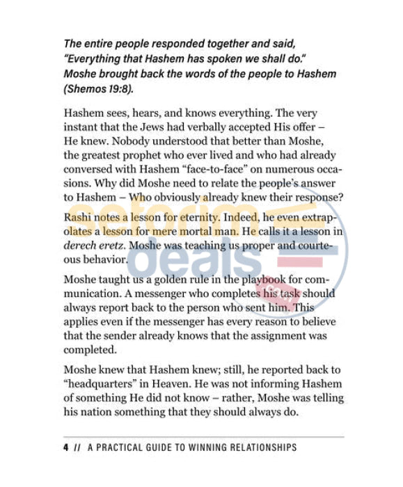 In Winning Relationships Mr. Yitzchok Saftlas, a respected community leader and veteran marketing strategist, reveals how the timeless lessons of the Torah can elevate the way we connect with others. Each “microchapter” highlights a specific concept on how you can builid and maintain “winning relationships” in your life. Practical lessons and pointers, along with first-hand stories accompany each easy-to-follow “microchapter.” Complete with a master index of topics, Winning Relationships is a guidebook to enable you to navigate, build and master your interpersonal relationships.