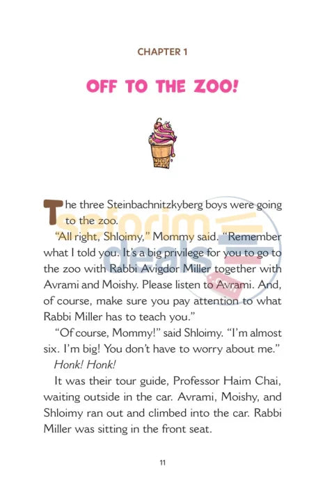 Join Avrami, Moishy, and Shloimy on an exciting trip to the zoo with the amazing Rabbi Avigdor Miller! Laugh along as Shloimy rides down the neck of a giraffe, joins the bears in their den during feeding time, and huddles together with the penguins to escape the cold.