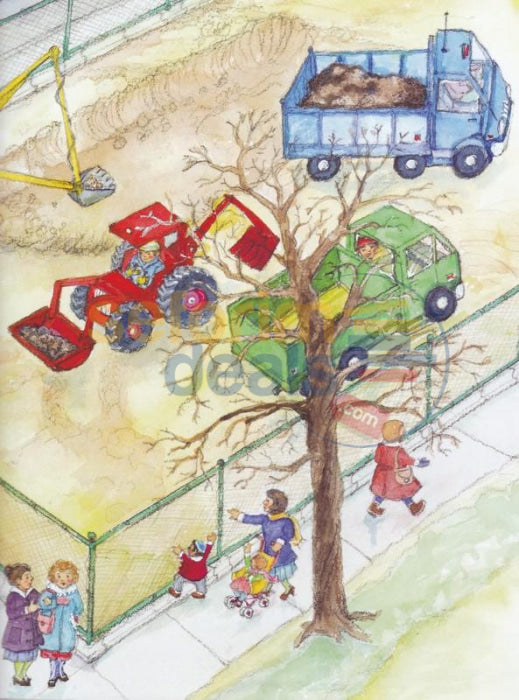 Clunk.Thunk. Brumm. Vrumm. Clang.Clong. The big empty lot near Nosson’s house is full of excavators, trucks, front loaders and bulldozers. How Nosson loves all the action!
