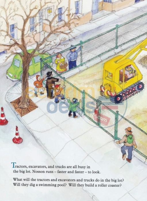 Throughout the story, Nosson wonders about what is being built on the big lot. Will it be a roller coaster? A pizza shop? A toy store? At the end, the mystery building is revealed!