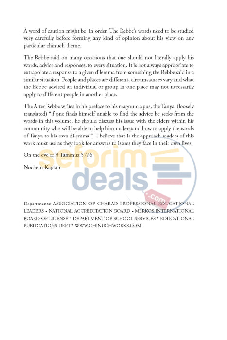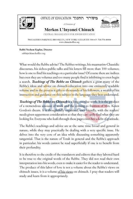 Be prepared: The Rebbe’ s uniquely positive approach will transform the way you see your child and student and infuse meaning and vitality into the way you see your role as a parent or educator!