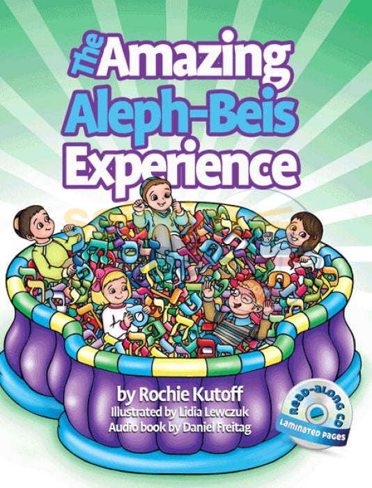 Product Information The Amazing Aleph-Beis Experience Book and Read Along CD Hardcover | 8.5" x 11" | 48 Pages Written by: Rochie Kutoff Illustrated by: Lidia Lewczuk Published by: Israel Bookshop Publications