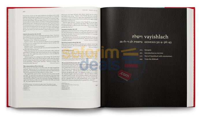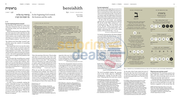 About this Book This groundbreaking edition of the first book of the Bible features a new foundational English translation, an anthology of commentaries representing the full spectrum of Jewish learning spanning 33 centuries, and an abundance of illustrations, maps, and infographics. Never before has the English reader been given direct, unmediated access to this wealth of moral, legal, philosophical, mystical, and psychological wisdom and guidance. Includes Hebrew Chumash with Onkelos and Rashi in a separate exquisitely designed volume.