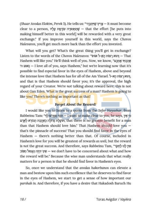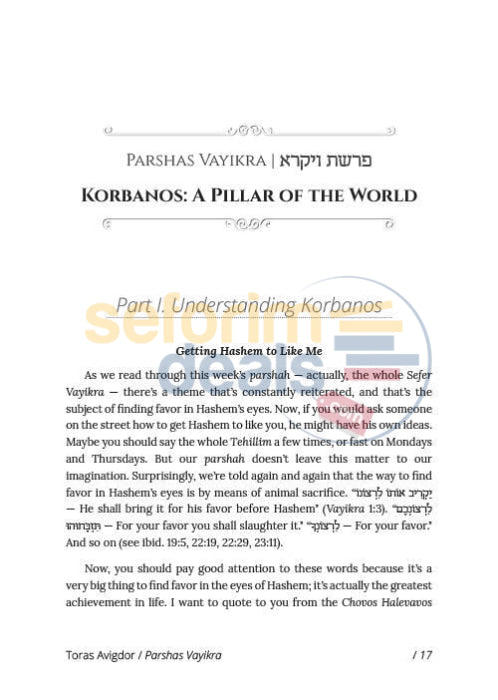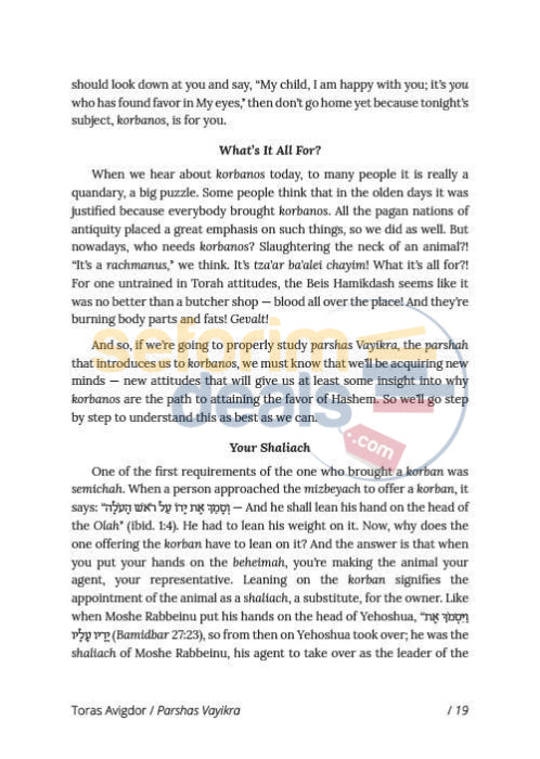 Now Toras Avigdor on Sefer Vayikra is available in book form, and it will surely become a treasured part of your library.