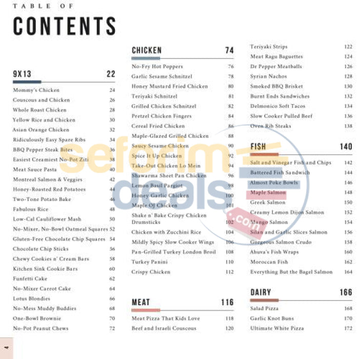 - Chicken, Meat, Fish, and Dairy main dishes, plus lots of easy side dishes, salads, and soups!