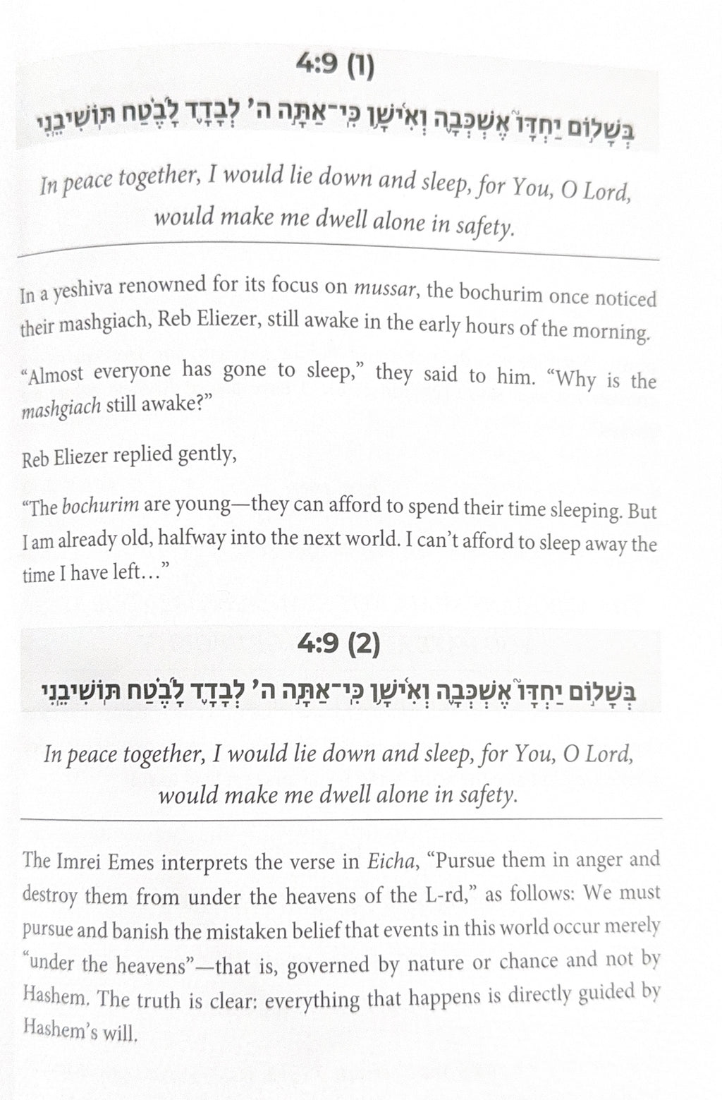 This book is meant to be your companion and guide. For each chapter, it offers points of insight, providing support and direction so that Tehillim becomes more than verses recited. Instead, it can transform into a living conversation between you and Hashem - a sacred meeting place where heaven and earth join in song.