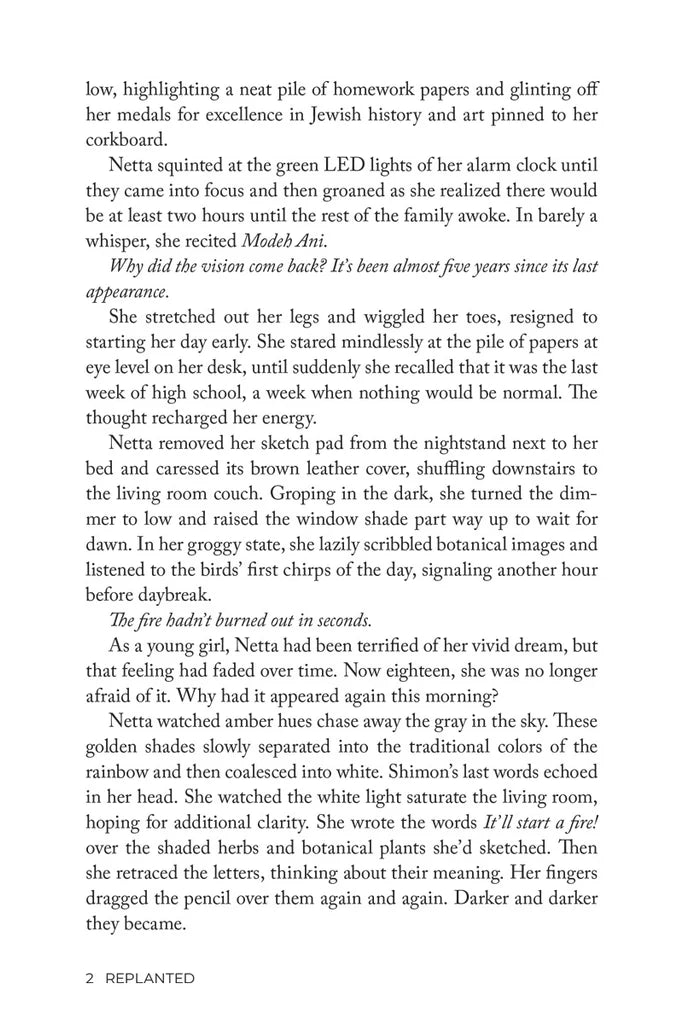 Eighteen-year-old Netta Bodenheim enjoys tending her herb and spice garden and scribbling in her sketch pad. Yet she’s plagued by memories of Ketzia, a teenager whose family lived in the times of the Second Beis HaMikdash. Once in seminary in Eretz Yisrael, Netta yearns for clarity as she explores her connection to Ketzia, but her odd behaviors and obsession with biblical plants land her in deep trouble.